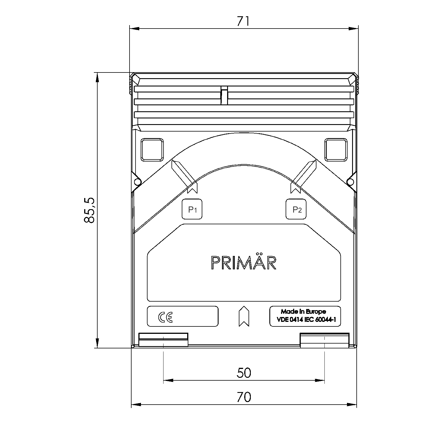 • Isolationsprüfspannung: 3 kV, Ueff, 50 Hz, 1 Min.
